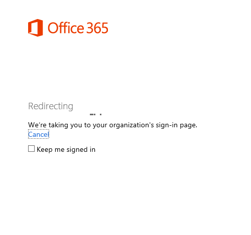 Here we are logging on as usual to mail.office365.com (or portal.microsoftonline.com), and of course the usual redirection is taking place after going to the password field.