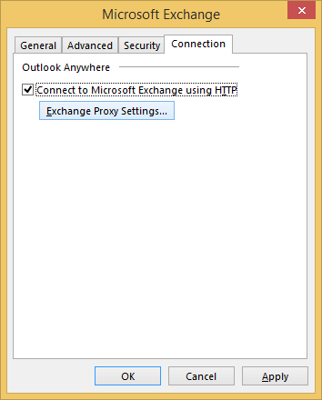 On the Connection tab check the box to connect using HTTP and click Exchange Proxy Settings