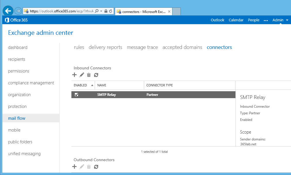 Normally you need a licensed user to be able to send e-mails using SMTP with Office 365. Your applications also need support for TLS encryption. If your application doesn’t support TLS, or if you need to send e-mails from another address than the licensed user’s address you need another solution. Luckily Office 365 can help you. The solution is to set up an inbound connector in Exchange Online Protection.
