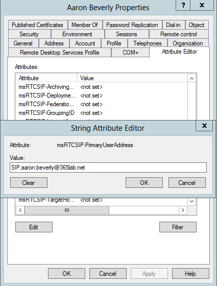 Anyway to add the SIP address in the proxy Att. I just used ADmodify.net selected the users and then customised the attributes with these settings.