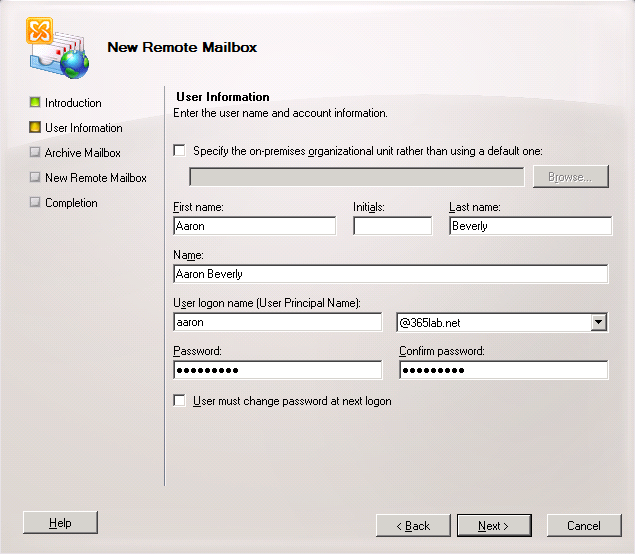 Fill in all the information that you would normally fill in when creating a new AD user.