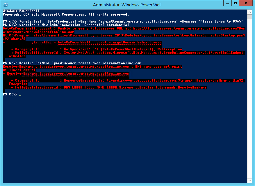 Recently I had to make a change in the Skype for Business Online environment of a customer. When I was trying to connect with Remote PowerShell I got an error message saying that it was “Unable to query AutoDiscover URL”.