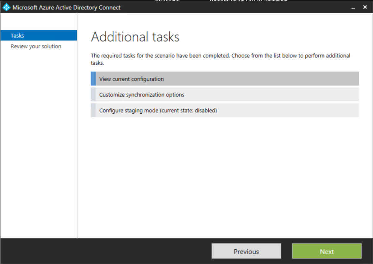 If you for example have chosen to use Password Synchronization and later want to reconfigure your solution to get SSO with ADFS, you don’t have the possibility to change authentication mode in the AAD Connect wizard after having it configured once.