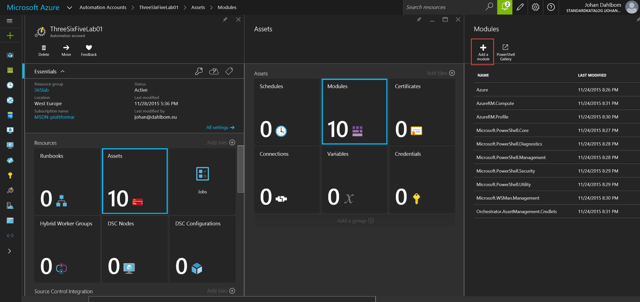 Since many probably will move from their scheduled tasks to Automation for their licensing scripts, I thought it was a good idea sharing on how to make the switch. I will use the “new” Azure portal and assume that you already have an Automation account.